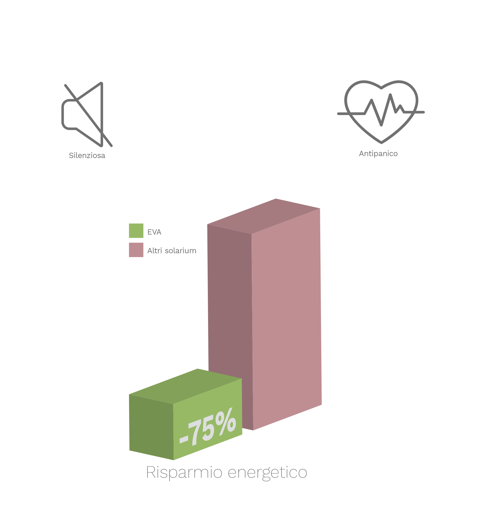 Certo EVA ha la caratteristica di avere un consumo energetico molto basso, in media il 75% in meno rispetto a un lettino tradizionale.