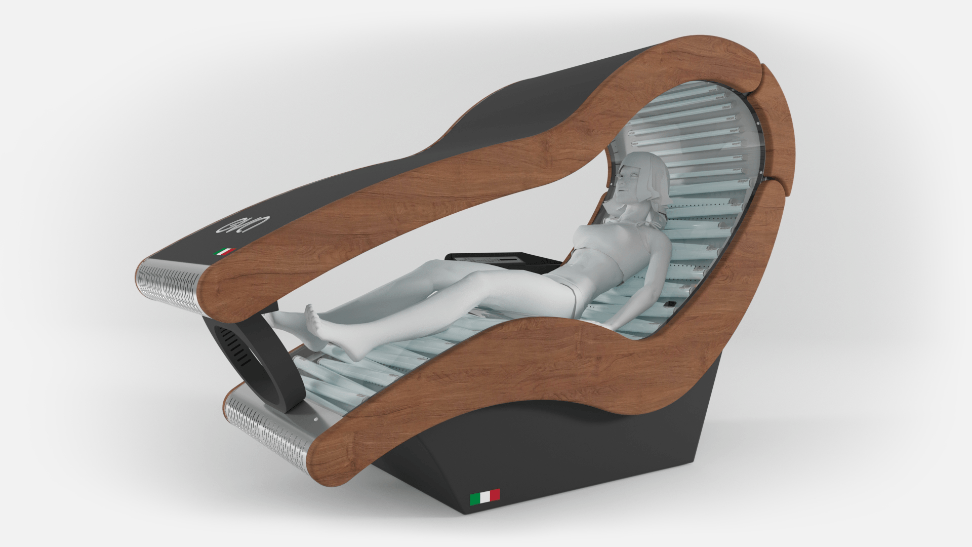 EVA è dotata del modernissimo sistema abbronzante a LED o ibrido combinato che si traduce in un risparmio di energia di oltre il 75% rispetto ai solarium tradizionali.